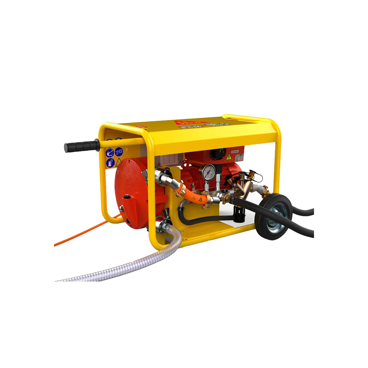 The output is automatically regulated according to the output of a rotor machine or concrete pump. After programming the amount of cement in the concrete and the volume per revolution or stroke, the control system converts the required delivery rate.