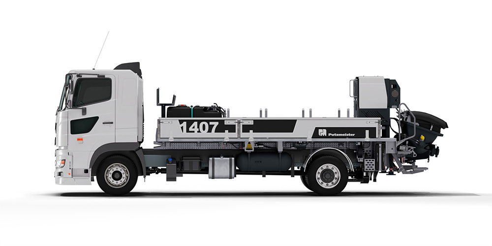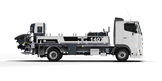 The MOLI 1407 is a compact and reliable line pump for everyday pumping. Its 1400 mm stroke core pump offers efficient and quiet pumping of up to 71 m³/h and can handle challenging concrete mix designs. A standout feature of the new MOLI 1407 is its storage capacity. Accommodating hoses above deck, pipes below deck, with additional room for small parts, bends, and reducers. The MOLI 1407 has been designed with plenty of easy access storage as a priority. Another highlight of the new Moli 1407 is the large 700L water tank, paired with a powerful high pressure water pump, to ensure ample water supply on board for cleaning. 200L Air tank with accessories for blow out is also supplied as standard. The MOLI 1407 is available mounted on a small 4x2 chassis, with a focus on convenience and operational efficiency.
